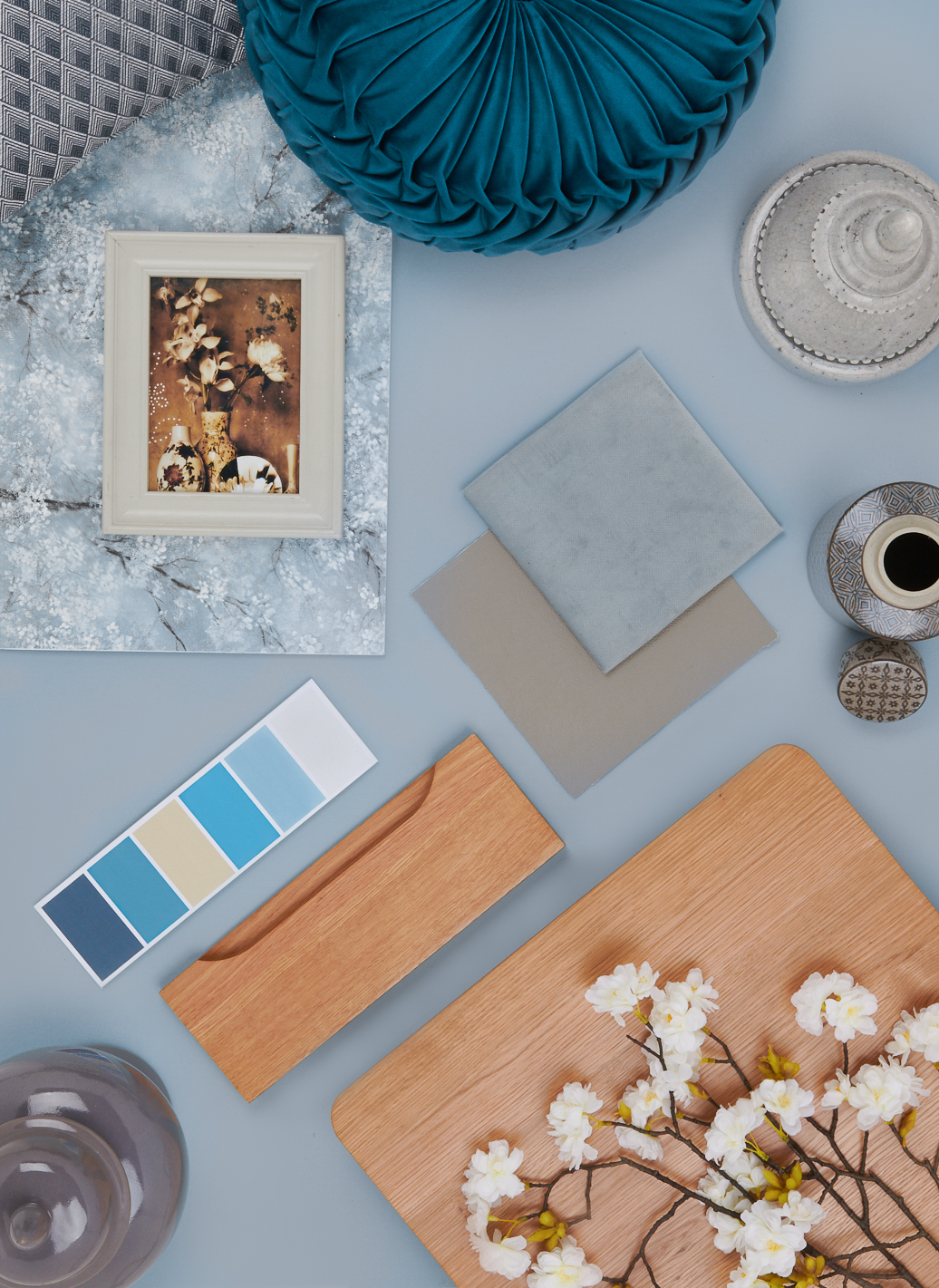 If you’re looking to create a serene oasis in your home, stick to complementary cool tones, mixing deeper blues and soft greys. Light creams or stone colours work well too. These gentle pairings make for a beautiful bedroom look, or help to create focus in a home office.
