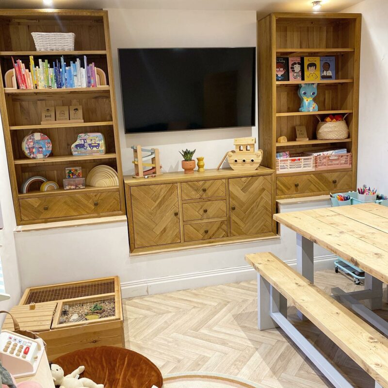 When it comes to making the most of every bit of alcove space, take inspiration from @onetheoaks clever playroom. We love how they have customised our Parquet bookcases and sideboard to fit perfectly in the alcoves and chimney breast to provide ample space for toys, books and more.