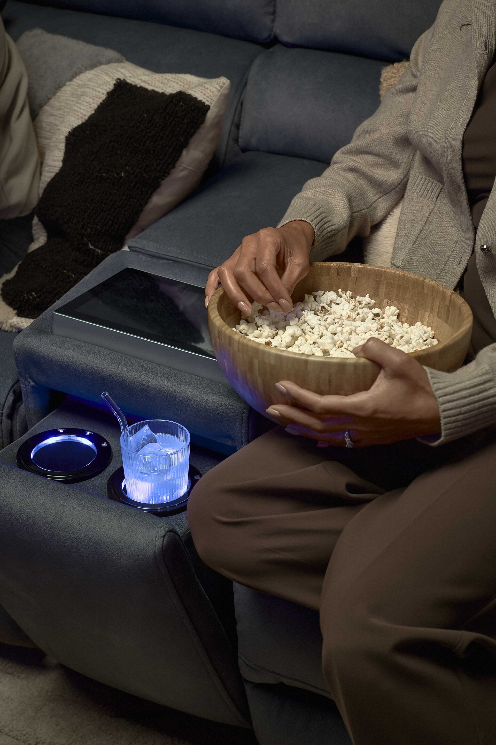 Customisable comfort settings ensure everyone can find their ideal position. Complete the look with tactile throws and textured cushions to add warmth, softness, and a sense of luxury that makes movie nights even more inviting.