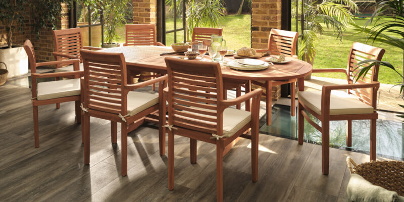 When it comes to garden furniture, you’ll want to make sure that you pick something that’s built to last and can withstand the elements. Durable teak and acacia are popular choices, and while they’re designed to be weather-proof, like all outdoor furniture you should cover during the winter months or in heavy rain.