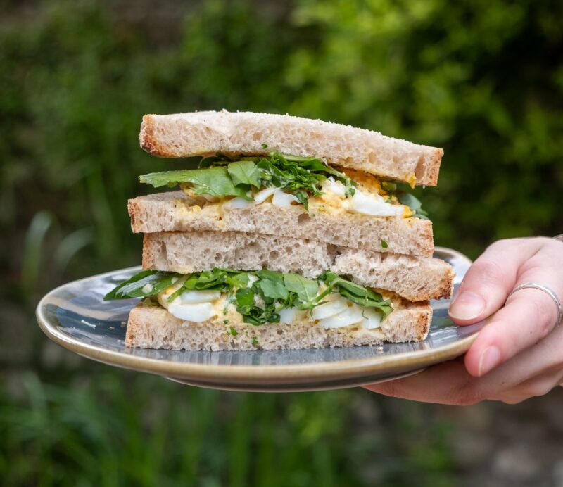 You can’t beat an egg sandwich, I love them when the eggs are still warm, with lashings of mayo and watercress. I had a delicious one recently that had some lightly pickled red onions in it, though capers would be a great addition too. While I love wholemeal and rye bread, I think our seeded spelt makes the best egg sandwich — it would definitely need to be buttered too.