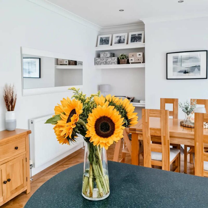 Brighten up your dining space with cheerful yellow accents that evoke warmth and positivity. Even something as simple as a vase filled with fresh daffodils or vibrant sunflowers can instantly lift the mood and create a welcoming atmosphere. Whether used as a centrepiece on your dining table or styled on a sideboard, yellow florals add a fresh and optimistic touch to the space.